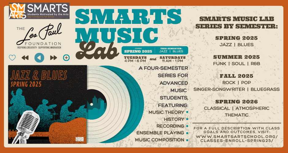 Classes begin on Tuesday, February 4 -- there's still time to register! To learn more about this exciting new program from SMARTS, including educational components and program benefits, check out our catalog for our Spring 2025 programs.