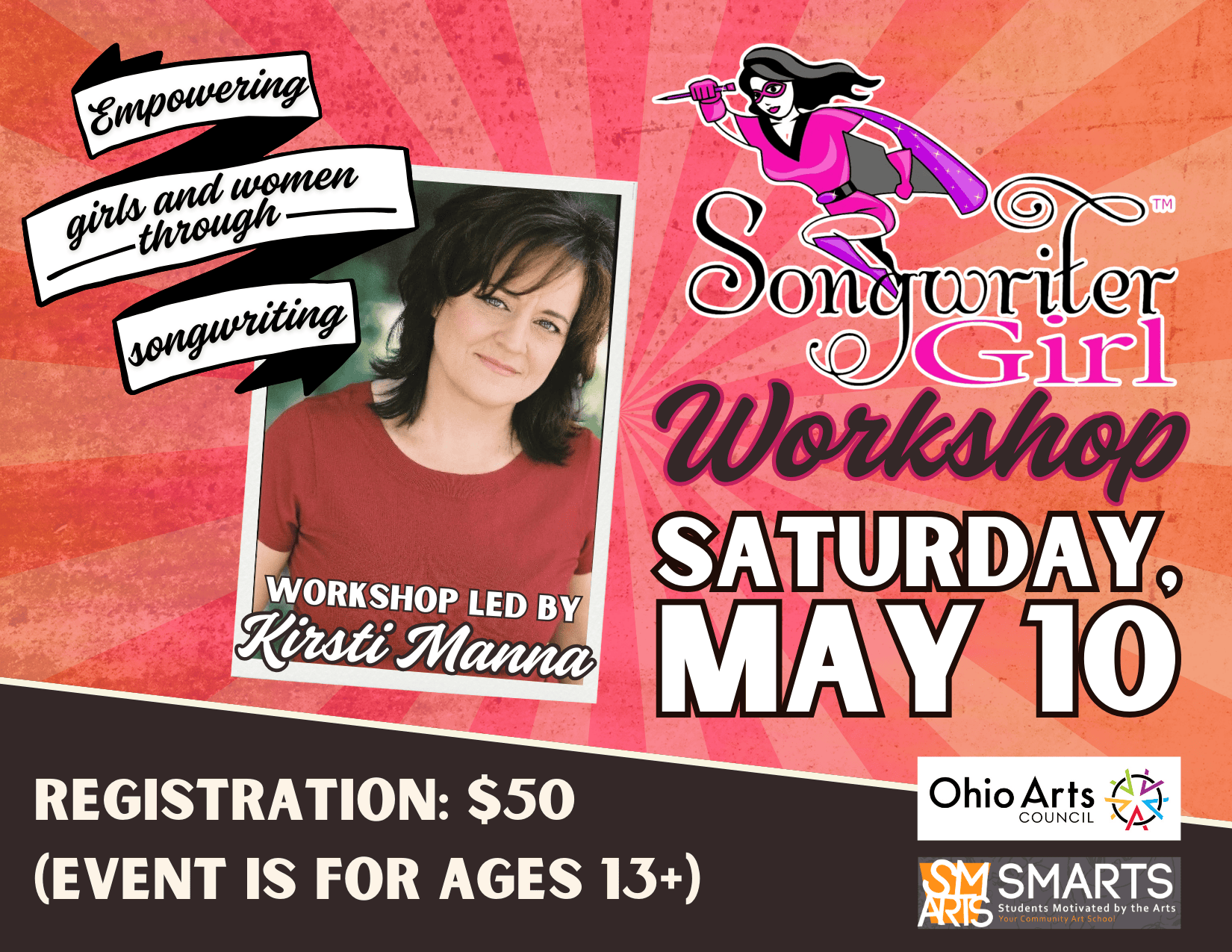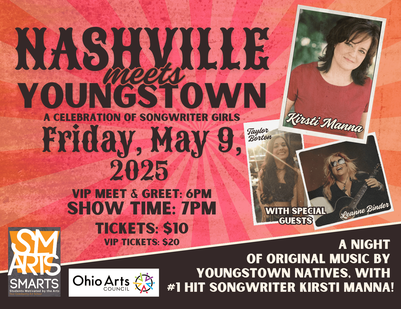 SMARTS' Songwriter Girl Workshop and Nashville Meets Youngstown are made possible in part by an investment of public funds from the Ohio Arts Council (OAC). The OAC is a state agency that funds and supports quality arts experiences to strengthen Ohio communities culturally, educationally, and economically.